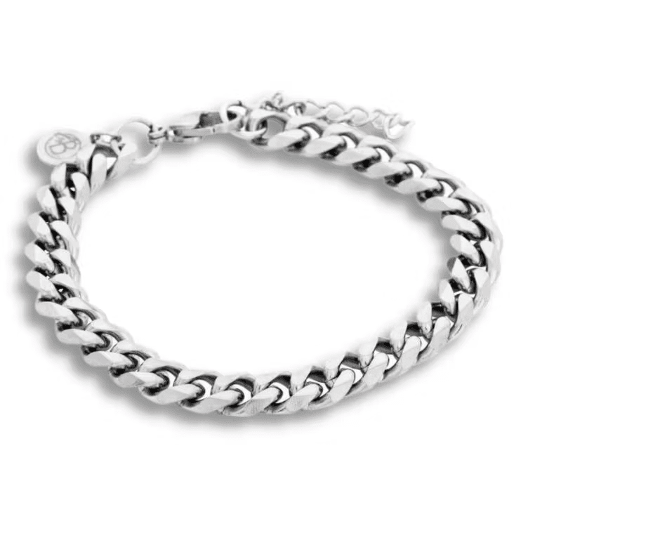 Detta stålarmband är en robust pansarlänk som aldrig går ur tiden! Armbandet ligger mjukt och följsamt på handleden tack vare dess design.