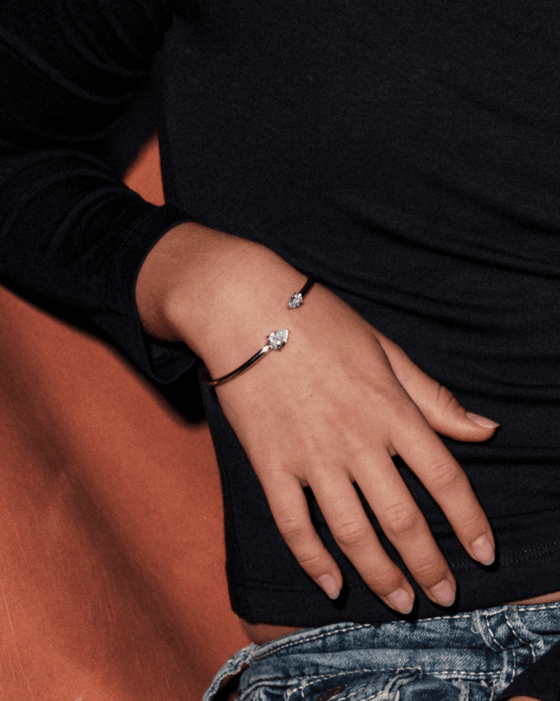 Elsa är en justerbar, nätt armring dekorerad med två gnistrande, droppformade kubisk zirkoner. Armbandet är tillverkat av allergivänligt kirurgiskt rostfritt stål, vilket gör det tåligt för både lek och vardagsanvändning utan att tappa sin färg eller lyster. Tack vare sin justerbara design passar armringen barn från 5 år och uppåt. En fin gåva som håller över tid - armringen levereras i en ask.