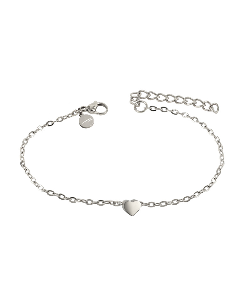 Maja armband från astrid&agnes.young har en nätt länk med en berlock i form av ett hjärta. Ett tidlöst smycke i miniformat som passar perfekt för barn i åldrarna 5-12 år. Armbandet är tillverkat av allergivänligt kirurgiskt rostfritt stål, vilket gör det tåligt för både lek och vardagsanvändning utan att tappa sin färg eller lyster. En fin gåva som håller över tid. Alla armband är 14 cm och har en förlängningskedja på 4 cm. Smycket levereras i en ask.