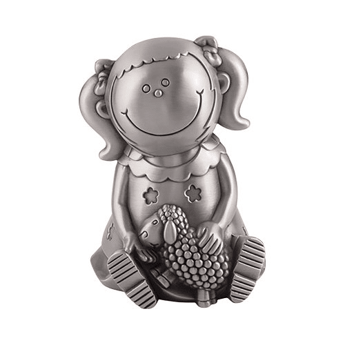 Sparbössa flicka med lamm tennfinish höjd 10,5 cm.