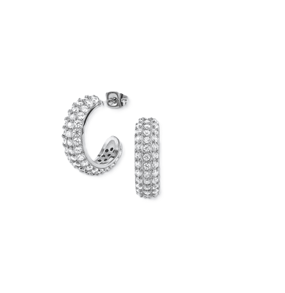 Harper är klassiska kreoler tillverkade av kirurgiskt stål, dekorerade med kloinfattade zirkoner över hela örhänget