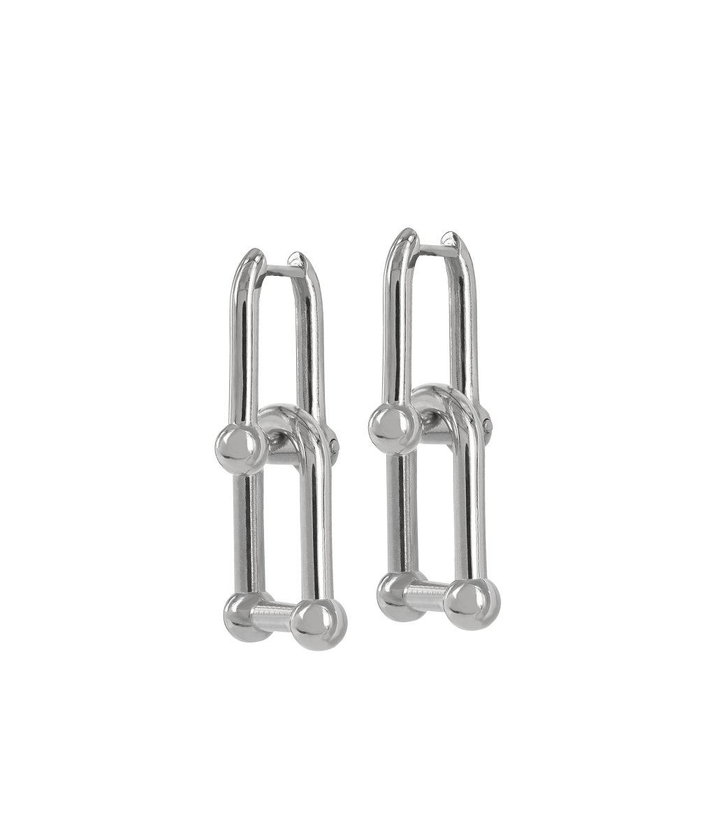 Örhängen i stål av 2st länkade bitar med oval form och kulor.