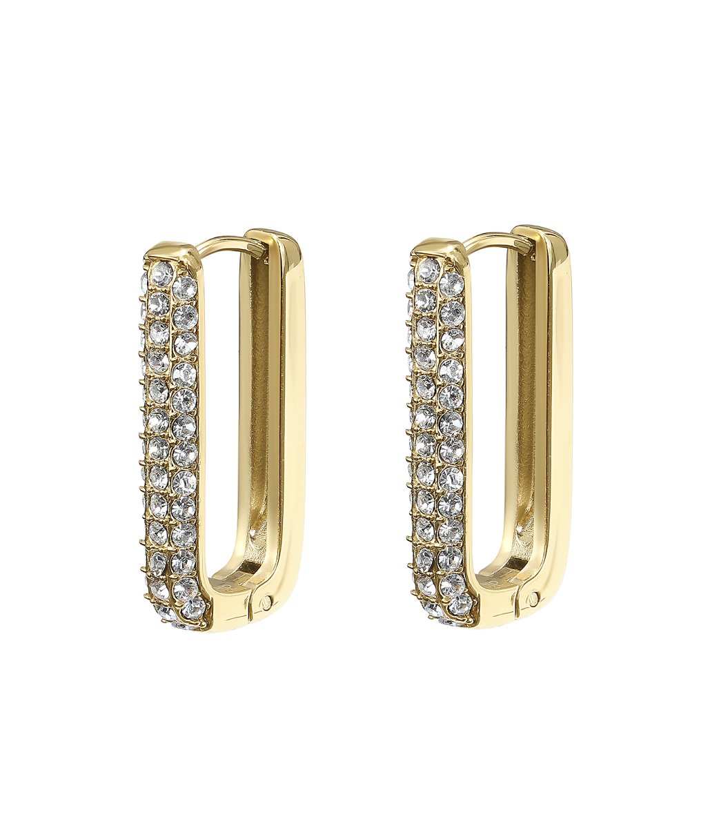 Rektangulära creoler i Guldpläterat stål fyllda med 40st klara kristaller.