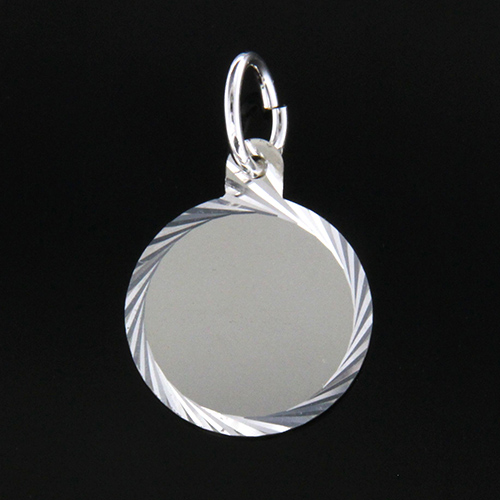 Rondell i silver med facetterad kant och bindögla