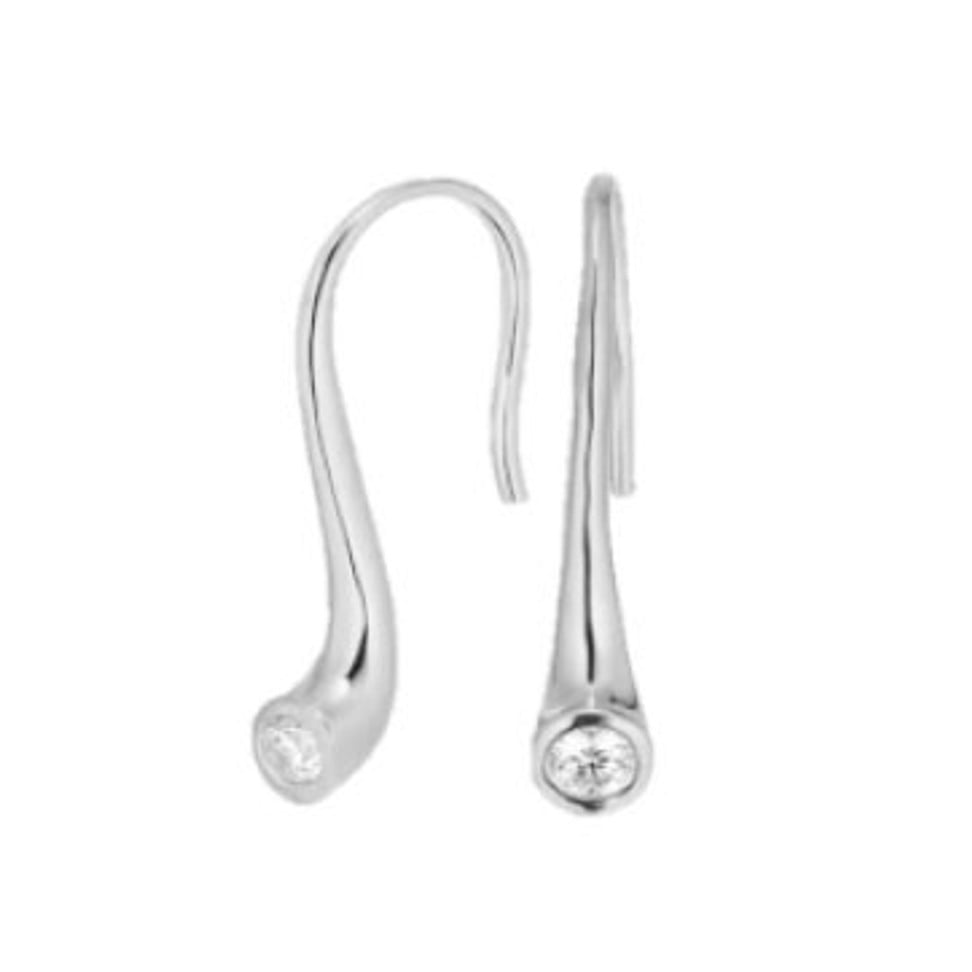 Droppformade örhängen i silverpläterad mässing med krok och kristall