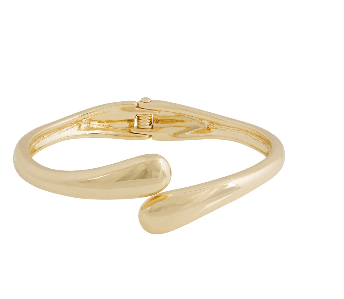 Ett minimalistiskt statement-armband i glänsande metall. Med sin organiska form och släta gångjärn kombinerar det design och funktion på ett perfekt sätt.Längd: 71 mmBredd: 7 mmMetall: zinkPlätering: 14k guldNickeltestad.