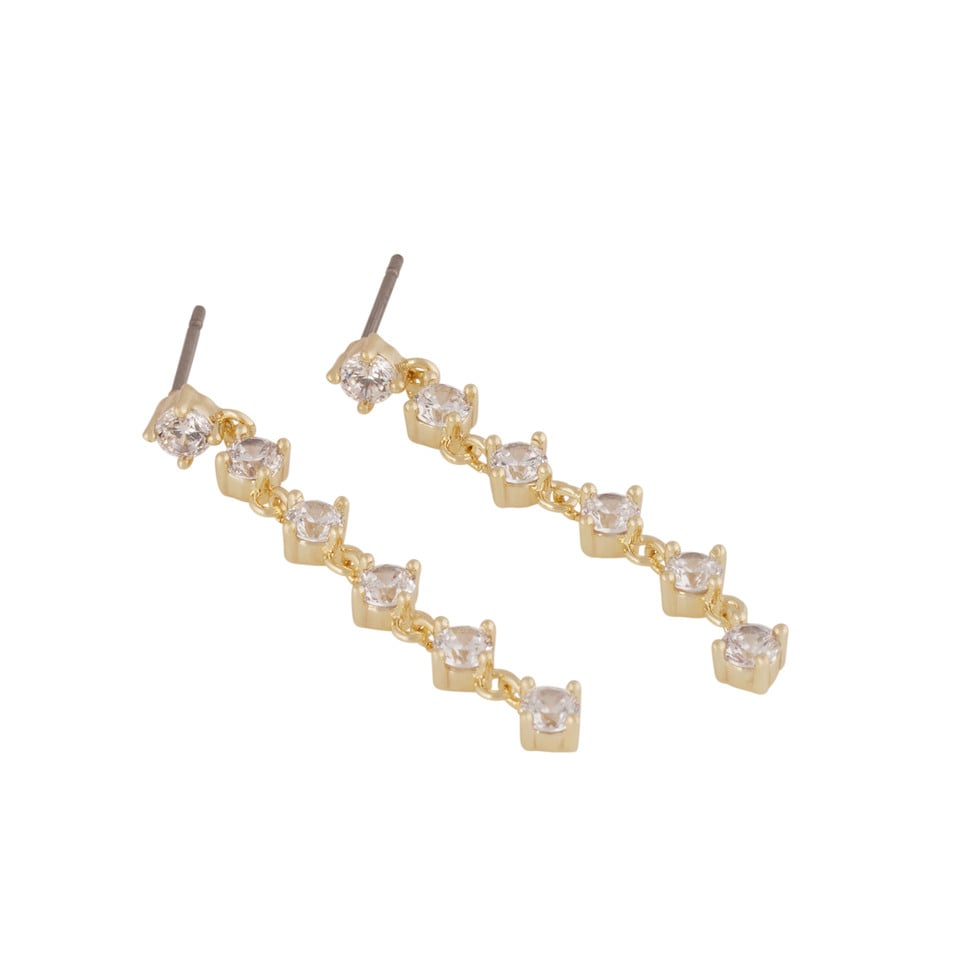 Långa örhängen i guldpläterad mässing med vita kristaller