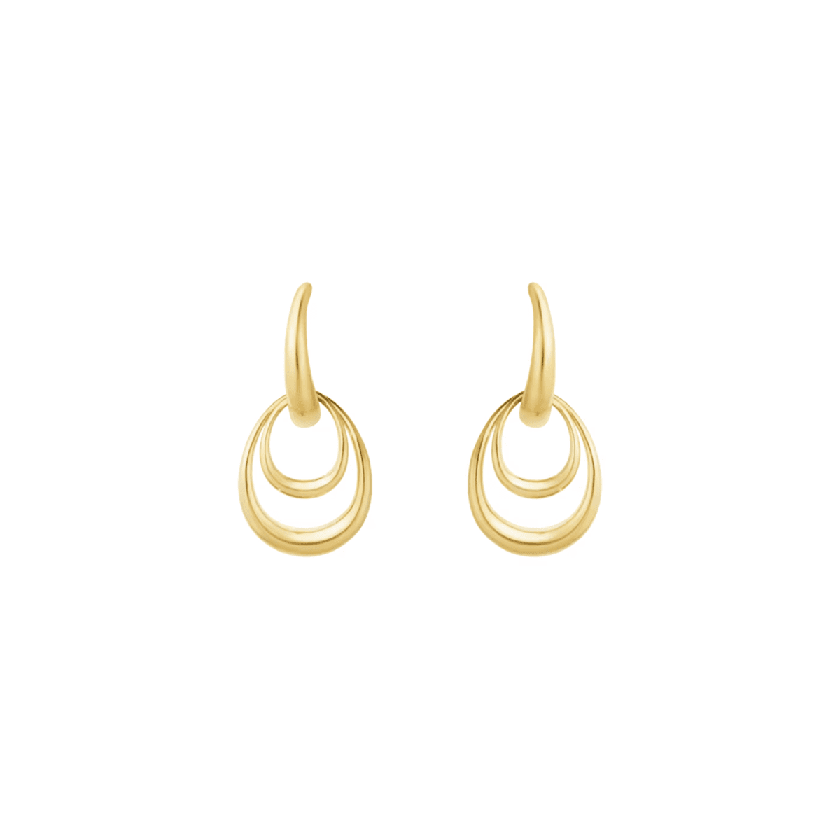 De här eleganta örhängena i 18 karat gult guld är skapade för att kunna bäras på flera olika sätt. I örhängena hänger två avtagbara ringar med Offspring-kollektionens organiska signaturform, som kan kombineras lager på lager eller bäras var för sig. Den unika designen ger upp till fyra olika kombinationer för ett personligt uttryck.
