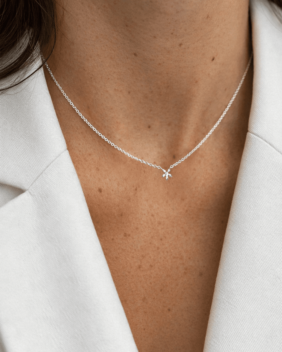 Ett kort silverhalsband från Drakenberg Sjölin i återvunnet silver med ett litet stjärninspirerat hänge på en nätt kedja. Ett minimalistiskt och tidlöst smycke i skandinavisk design, perfekt för både vardag och speciella tillfällen.
