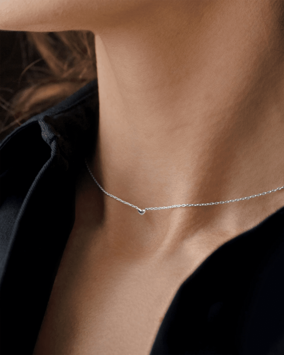 Ett kort halsband på tunn kedja med ett litet högpolerat hjärta. Stilrent och vackert i dess enkelhet.