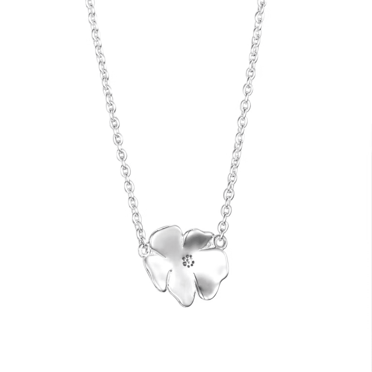 Halsband med blomma i återvunnet silver med kedja i ställbar längd