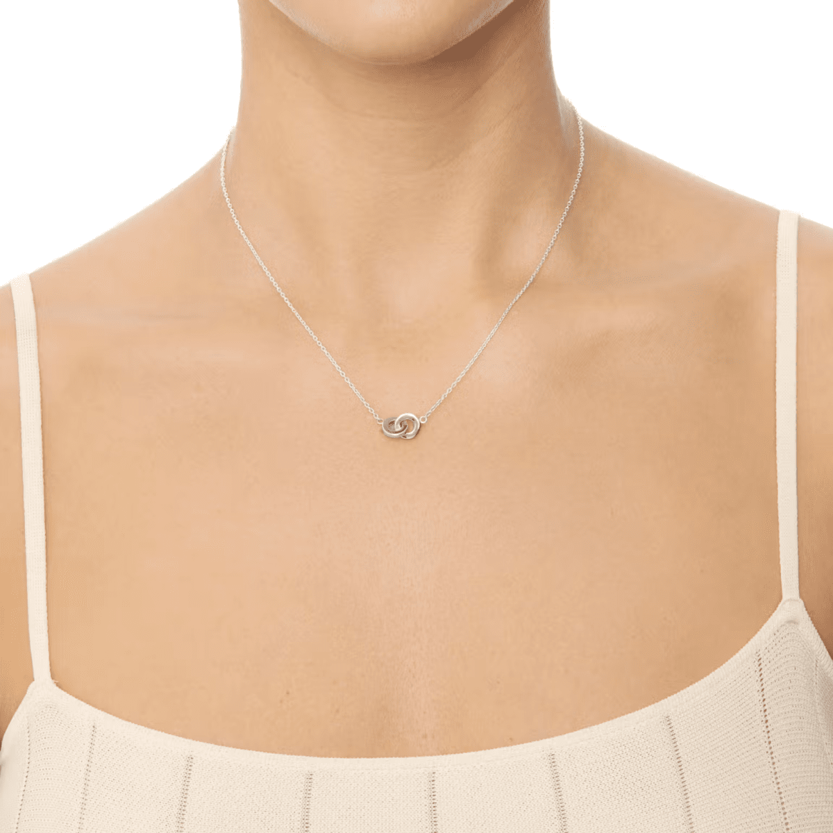 Halsband med två sammanhängande ringar i återvunnet silver med ställbar kedja