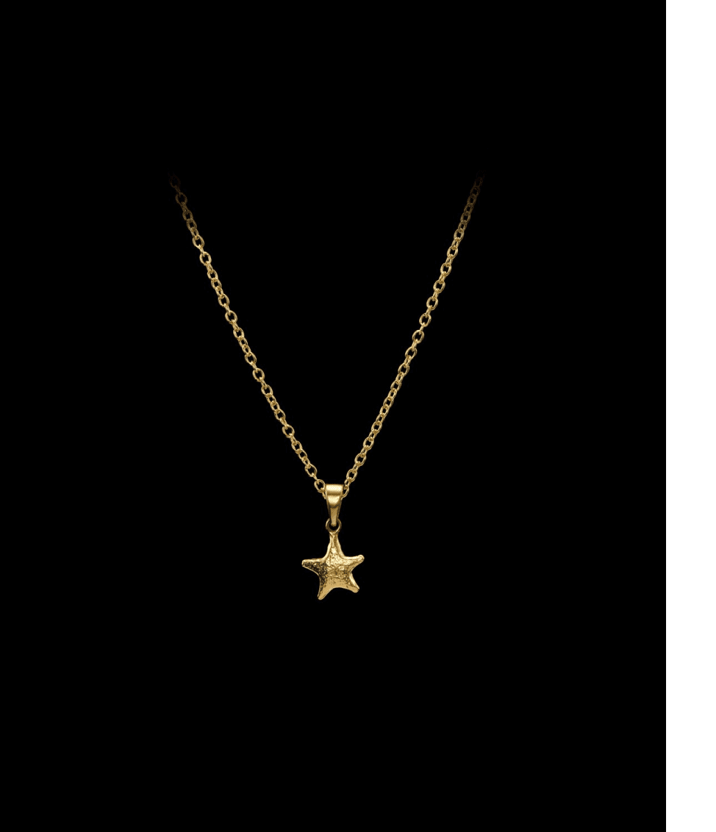 18k guldpläterat silverhalsband med ett stjärnformat hänge inspirerat av natthimlen. Ett raffinerat himmelskt smycke att bära nära hjärtat.