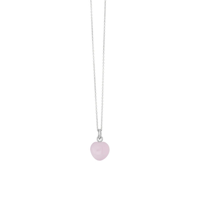 Halsband tunt ankarkedja 45 cm, silver, 8 mm polerat ljusrosa kristallhjärta