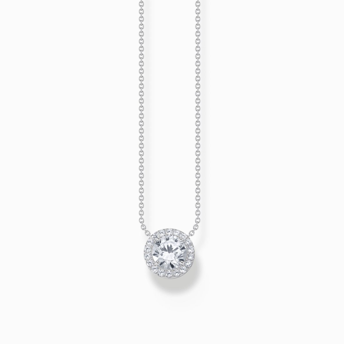 Iögonfallande: detta halsband med halohänge drar till sig allas uppmärksamhet. Det är omsorgsfullt utformat och tillverkat av återvunnet silver. En vit zirkoniasten med briljantslipning är hängets mittpunkt. Den är omgiven av en krona av små, vita zirkoniastenar som gnistrar och lyser intensivt. Denna tidlösa och eleganta design är den perfekta accessoaren som kompletterar varje look. Bär detta halsband med hänge varje dag och vid varje tillfälle - oavsett om det är kontorsdagar, familjeträffar eller middagar.