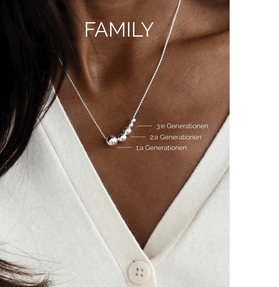 Silverkulor till ditt Family-halsband. Välj antal kulor som representerar de olika generationerna för att berätta just din familjehistoria, med föräldrar, barn och barnbarn.