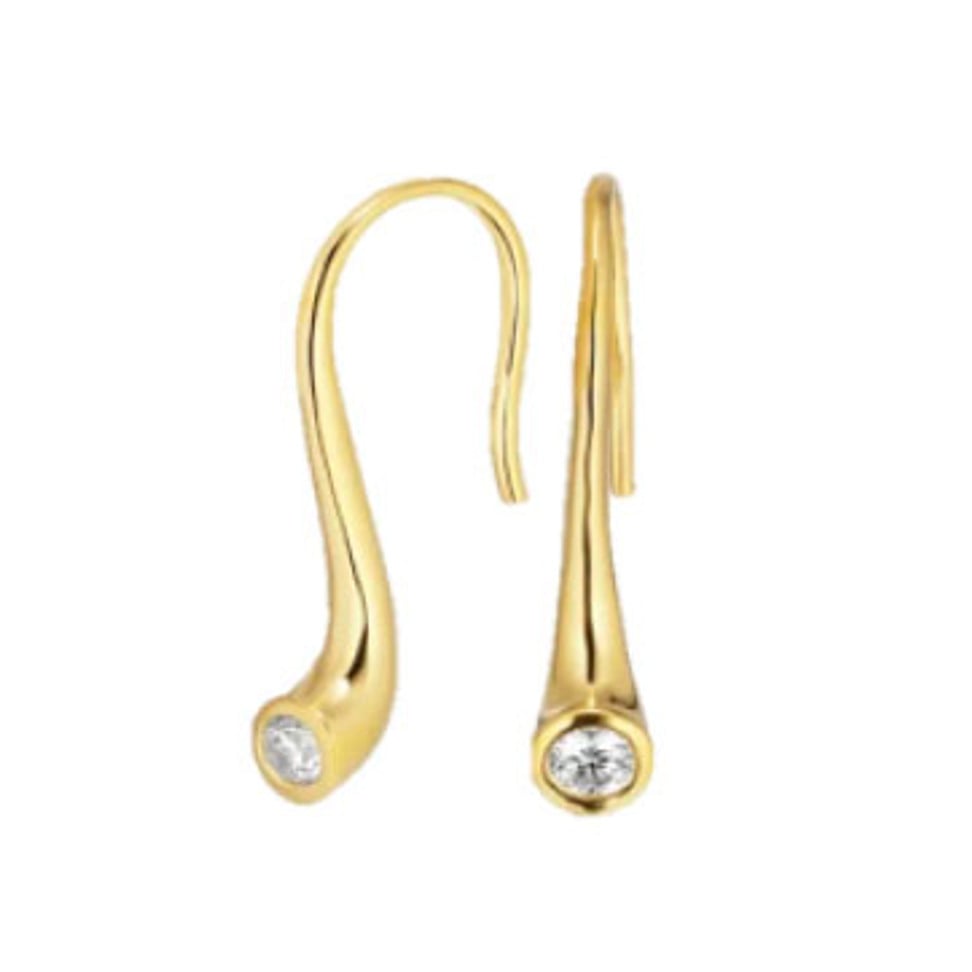 Droppformade örhängen i guldpläterad mässing med krok och kristall