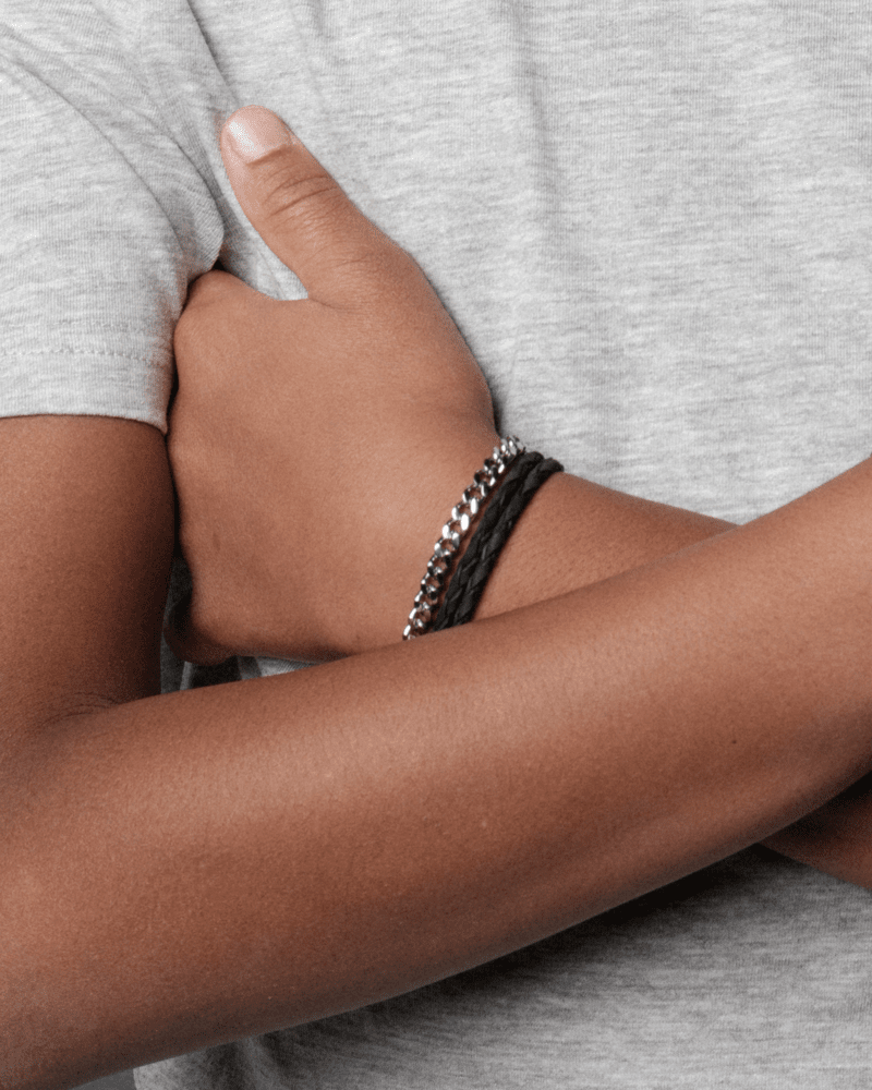 Hugo armband från AROCK.young är ett flätat armband av italienskt läder, med detaljer av kirurgiskt rostfritt stål - ett allergivänligt material som tål både lek och vardaglig användning. Armbandet har ett bälteslås och kan justeras i storlek upp till 14,5 cm. Alla smycken levereras i en fin ask, redo att ge bort som gåva.