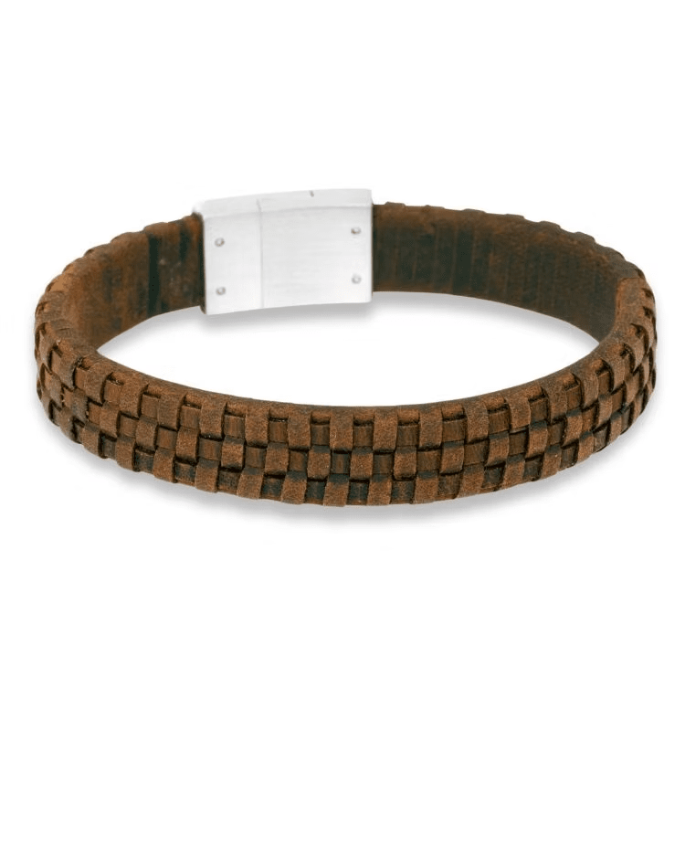 Ett stilrent handflätat läderarmband med ett silvrigt magnetlås. Finns i flera storlekar