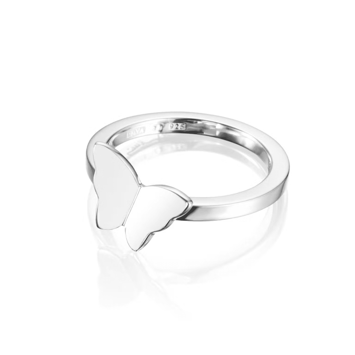 Ring med en liten fjäril i återvunnet silver