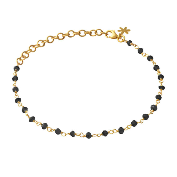 Armband 16-20 cm, förgyllt silver, knuten 3-4 mm fasett svart spinell