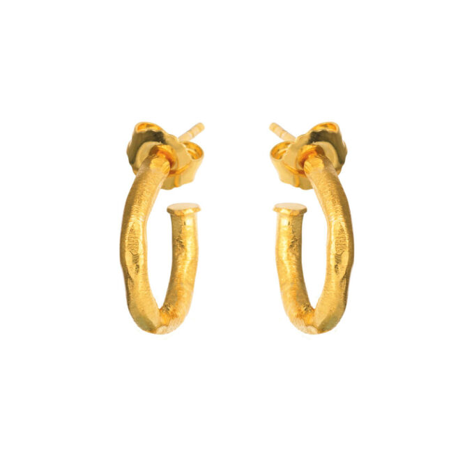 Örhänge, förgyllt silver, halvcreol i organisk yta 16 mm
