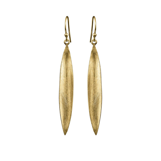 Örhänge med krok i förgyllt silver, långt böjt blad