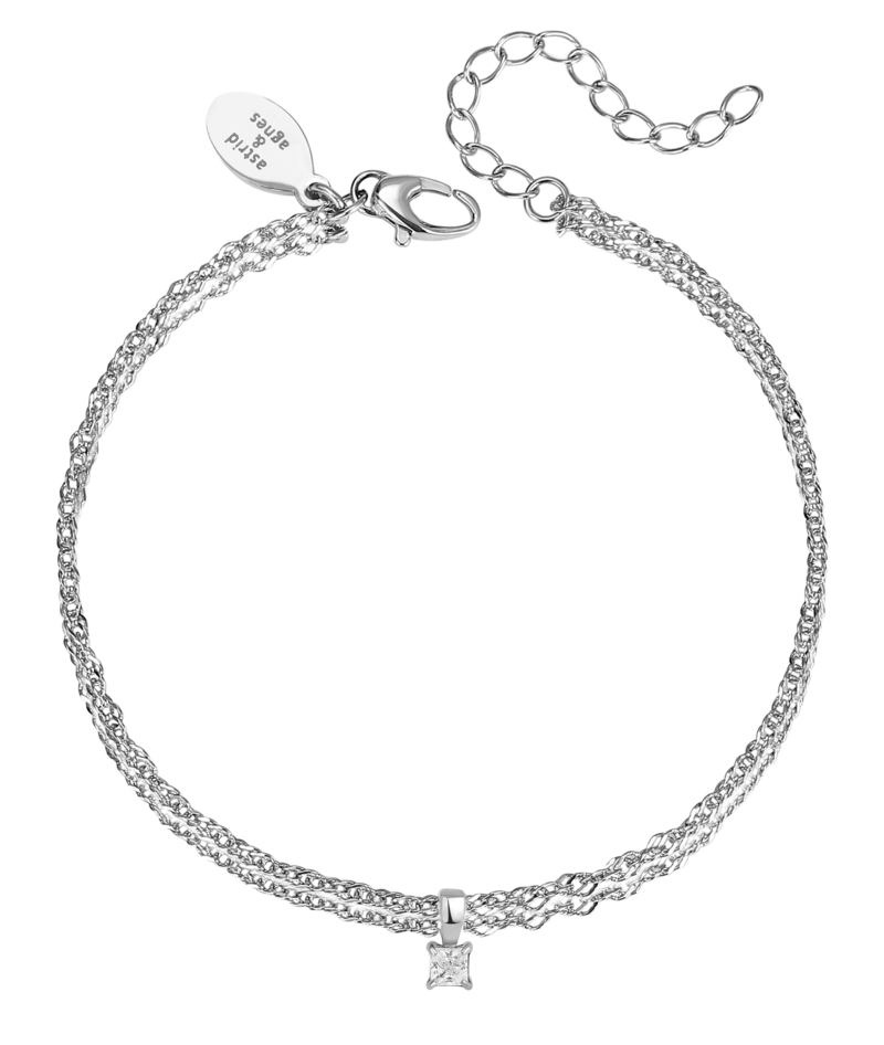 Armband av två nätta Singaporelänkar i kirurgiskt rostfritt stål med ett hänge av en klar kubisk zirkonia kristall.