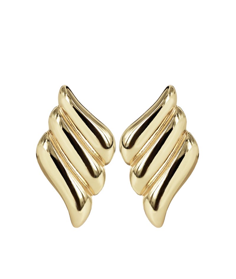 Vingformat örhänge med mjukt svepande linjer skapat 14k guldpläterat stål.