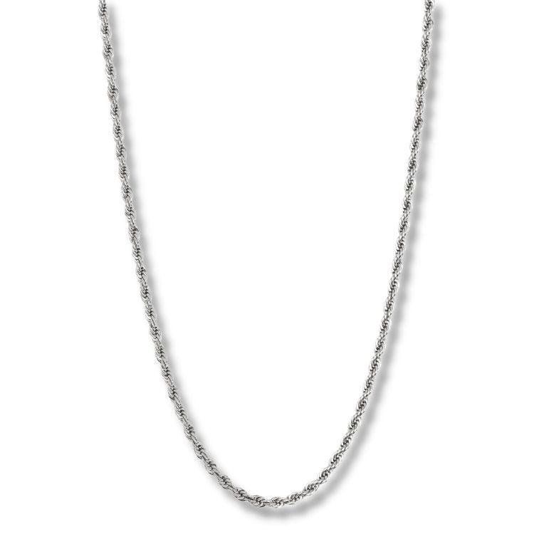 En snyggt twistad kedja av små tunna trådar av stål som liknar ett rep - även kallat Cordell. Ett tidlöst halsband att bära under lång tid.