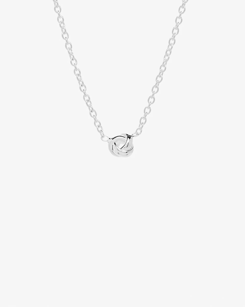 Ett kort nätt silverhalsband med en liten knut i blank, polerat silver. Ett stilrent, tidlöst och klassiskt smycke.