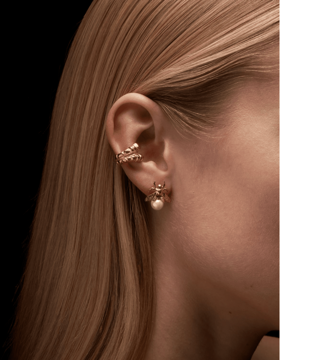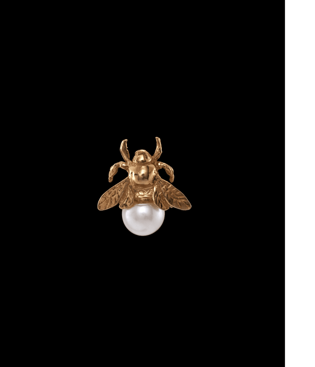 Förgyllt humleörhänge med sötvattenspärla. Charmigt och sofistikerat accessoar som passar olika stilar