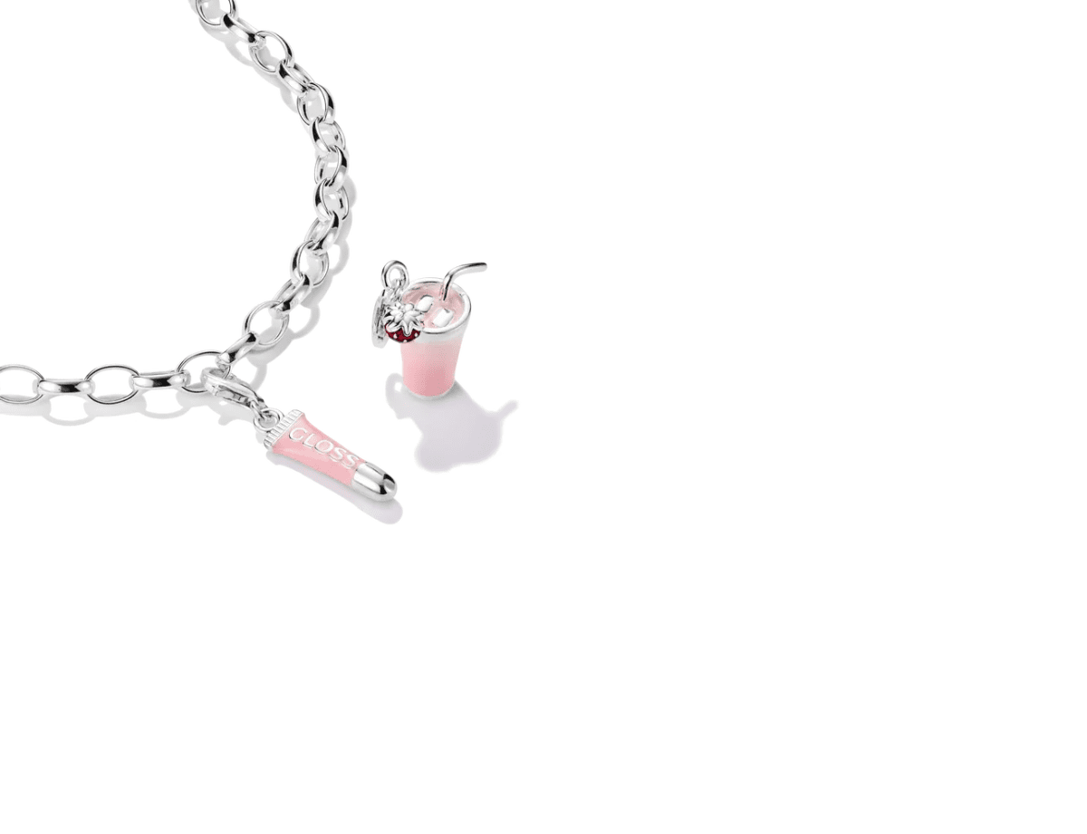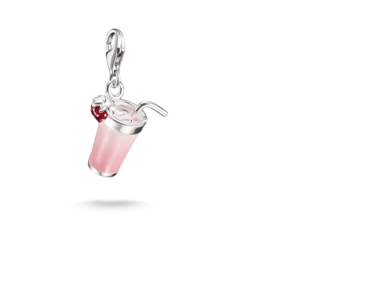 Hänget i 925 sterlingsilver pryds av en delikat färgövergång i rosa och pink som påminner om populära ismatcha-drycker, medan små emaljerade jordgubbsdetaljer ger designen en fruktig, lekfull twist. Resultatet är en modern, söt charm full av positiv energi – ett perfekt samlarobjekt för alla som älskar Japan-inspirerade looks, café-vibes och färgglada statement-smycken.