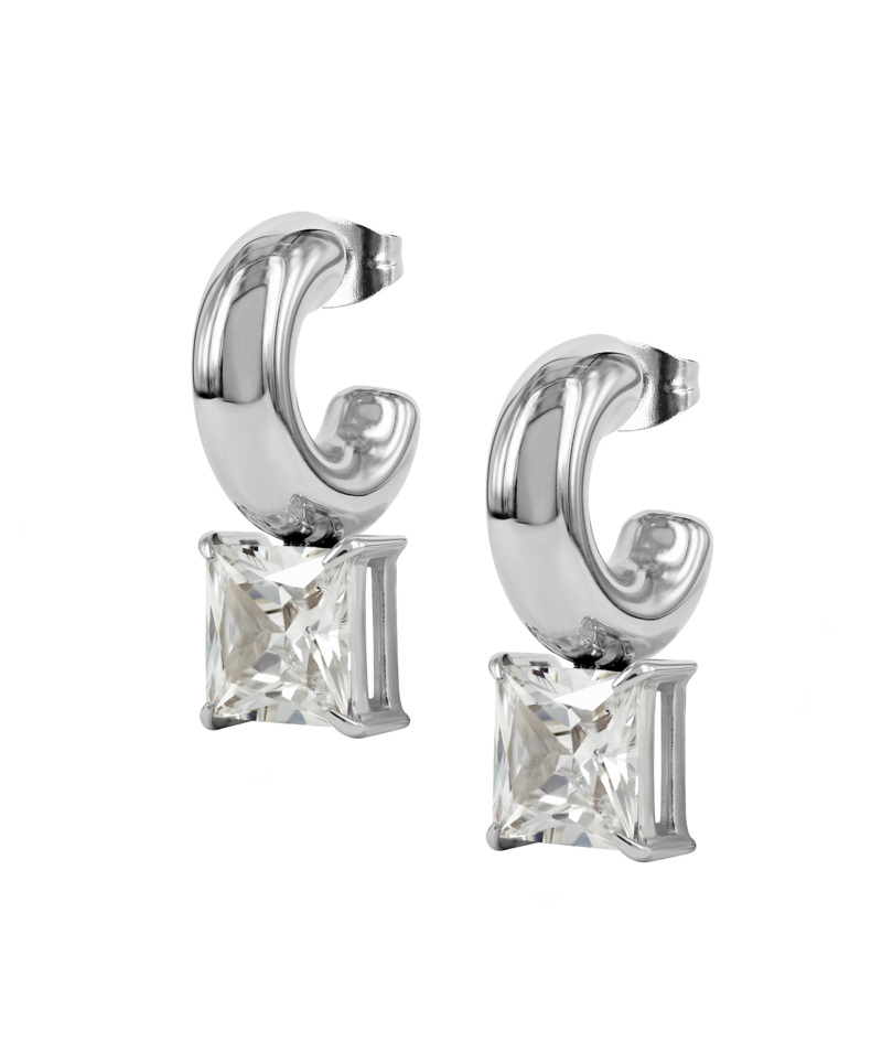 Örhängen på stift i kirurgiskt rostfritt stål med en kvadratisk kubisk zirkonia kristall.