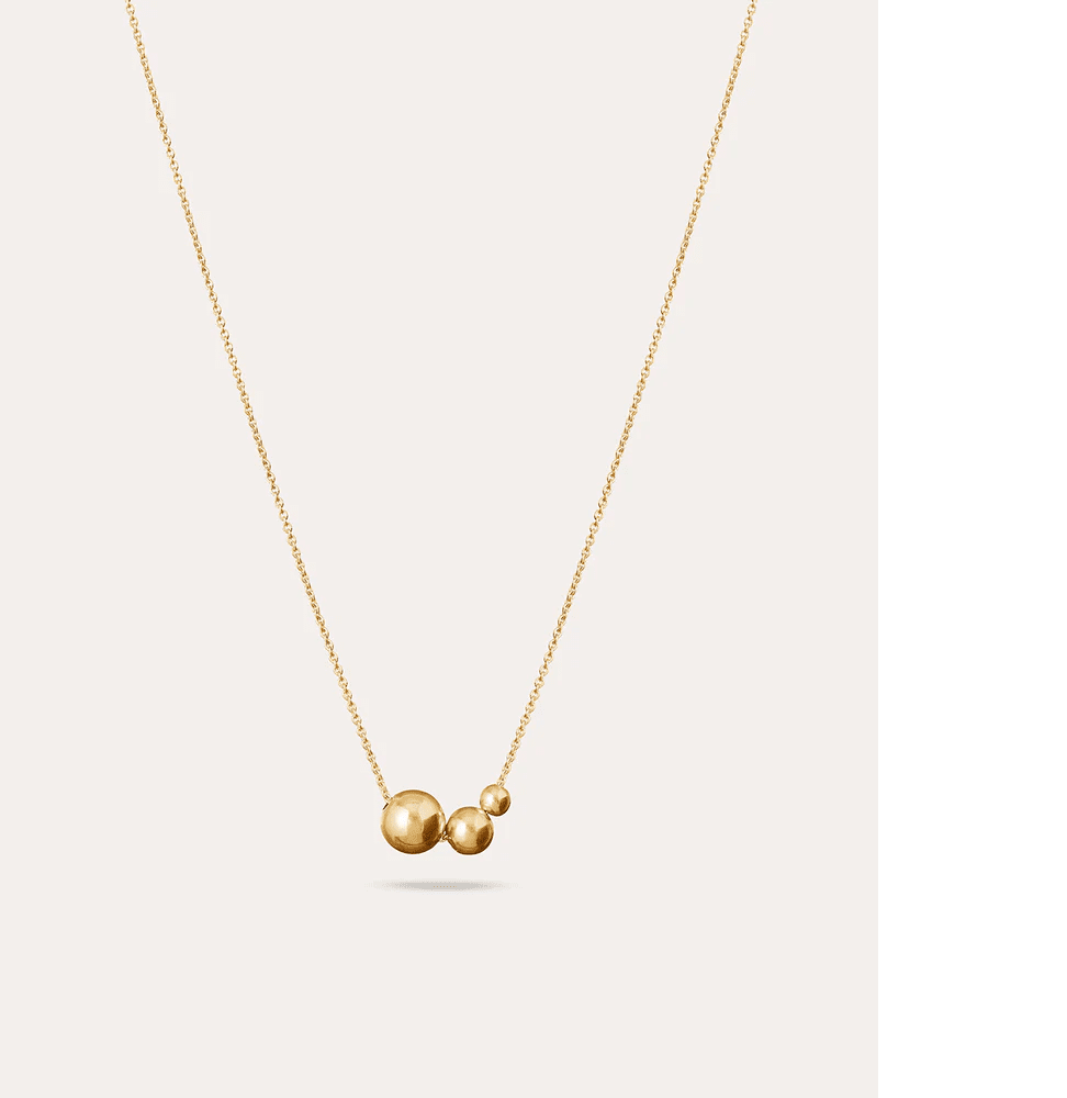Guldpläterat halsband från kollektionen Family, design av Sofia Wistam. Köp till extra kulor för att berätta just din familjehistoria, med barn, föräldrar och mor/farföräldrar. Family är inte bara ett smycke. Det är hjärtats karta. Ett band mellan då, nu och sen.