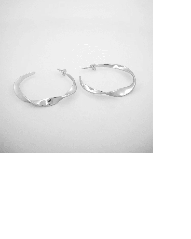 Handarbetade örhängen i återvunnet silver från kollektionen Twirl, design av Sofia Wistam.