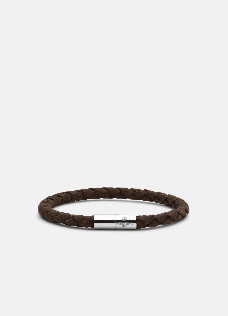 Det snygga armbandet med flätat italienskt mockaläder och graverat lås kommer i många olika sobra färger. Genuine Italian suede leather™