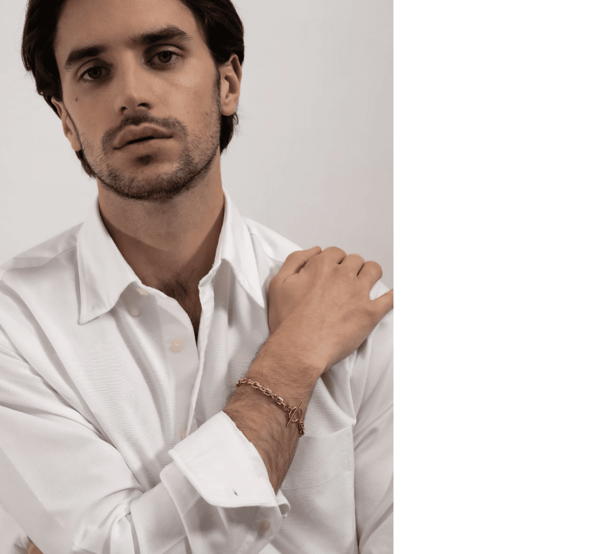 Serien Unité med sin traditionella konstruktion påminner om de gamla mässingskedjor som Skultuna producerat i århundraden. Bredd på länk: 6mm