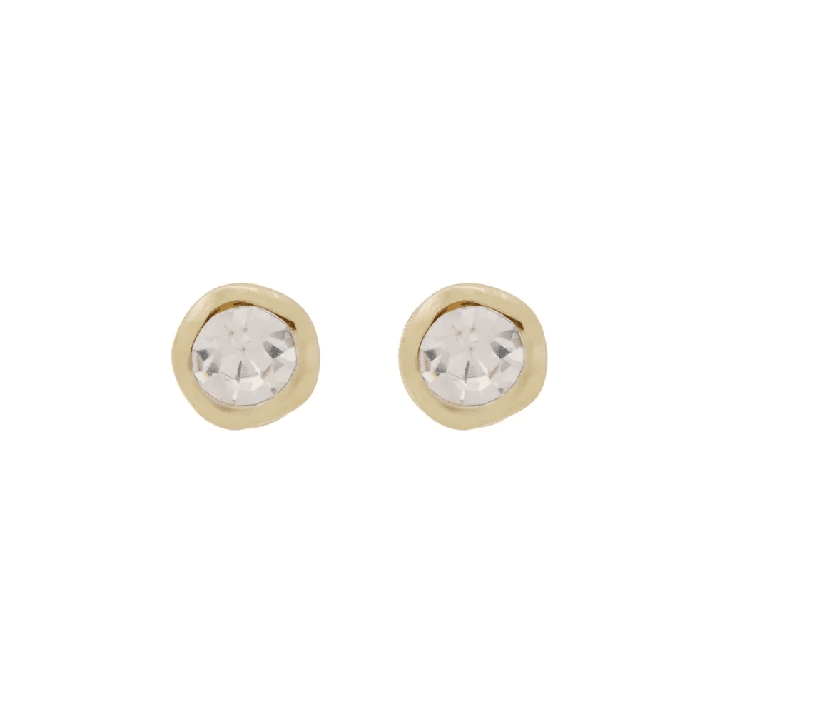 Örhängen med infattad sten inramad av en subtilt ojämn kant för en mjuk och modern look.Längd: 8 mmBredd: 8 mmMetall: mässingPlätering: 14k guldÖvrigt material: kubisk zirkoniaNickeltestad.